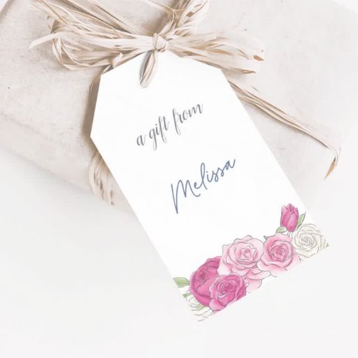 Elegante y moderna ducha de flores, con un borde inferior de rosas de color blanco, rubio y rosa fucsia, con una exuberante vegetación que asoma a la zona. Personalice los detalles de su ducha de bebé en una tipografía elegante de color azul y gris acentuada con caligrafía de estilo manuscrito. Las tarjetas se revierten para sonrojar rayas rosas y blancas.