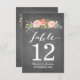 Tarjeta de número de tabla. Ideal para Bodas o para cualquier ocasión. Esta carta presenta bonitas flores de color acuático y una mezcla de tipografía moderna, todo ello sobre un fondo de pizarra de moda.