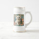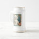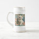 Beer Stein con un gato blanco al estilo de Alphonse Mucha! Este gatito de ojos azules y esponjoso posa con flores rosadas y mantas azules. ¡Un regalo fabuloso para los amantes del gato y de los coleccionistas Art Nouveau!