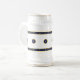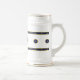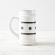 Fresco y brioso, el diseño clásico y original de ZoeSPEAK en este Beer Stein se compone de dos bandas de azul marino bordeadas de amarillo dorado, con estrellas doradas en fila a través del centro. Las bandas texturadas forman bordes en la parte superior e inferior del diseño, y en el medio está una fila de círculos sólidos de textura azul profundo con bordes dorados y estrellas doradas en el centro. El fondo es blanco, y el diseño tiene el aspecto de un patrón chino tradicional.
