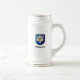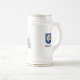 Beer stein with drawing and coat of arms of the famous German battleship Bismarck of world war II with the name of the ship written with fraktur letters.