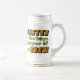Este diseño inspirado en "Les Miserables" para cervecerías dice, "Maestro del lúpulo. Cuidador del brebaje". Las palabras "amo" y brebaje se hacen en colores de cerveza con burbujas. El resto es verde, sustituyendo la "o" por lúpulos y una parte de la "K" por una llave. Un gran mug o stein para un ama de casa o un maestro de cerveza.