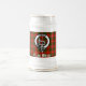 Elegante cervecería stein presenta insignia escudo del Clan Escocés Bruce y texto de personalizable sobre fondo tartán.