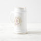 Celebra a tus padrinos con esta jarra de cerveza personalizada, que presenta un monograma floral en color burgundy y dorado. El diseño de escudo elegante añade un toque refinado a este regalo único para la fiesta de bodas, perfecto para beber con estilo el gran día y más allá.