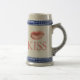 Graciosa taza de cerveza (stein). La lengua humana sale de un agujero negro en forma de boca y el texto Cheeeezzz de un lado al espectador. Los labios de besada de la mujer y la palabra beso al lado de un bebedor. Puede cambiar las imágenes y puede cambiar o eliminar la palabra Beso. ¡Diviértete!