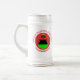 Personalized beer stein presenta un ángel vestido con la bandera de la diáspora africana, o bandera afroamericana. Ángel vuela dentro de un círculo fractal rojo. La circular roja que se lee arriba dice "Ángel de la diáspora africana" con espacio para agregar el año. Debajo, en la misma letra, un lugar para un nombre. Personaliza un regalo para el calentamiento de la casa o cualquier día de fiesta, evento o ocasión especial. Del 19 de junio a Kwanzaa, de cumpleaños a reuniones familiares, y más.