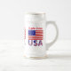 La marca de cerveza personalizada stein o mug incluye la bandera de los Estados Unidos de América con las letras USA abajo en rojo, blanco y azul con estrellas y rayas, que se encuentran en la bandera. Personalice agregando un nombre o, para un regalo creativo. Ideal para fiestas patrióticas, como el Día de la Independencia. Maravilloso regalo para su patriota. Diversión para usar en reuniones familiares, grupos de viajes y clubes. Papá podría vivir el Día del Padre también.