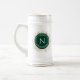 Elegante, clásico, jarra de cerveza para padrino monogramada en verde esmeralda y dorado, con inicial.
