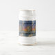Roaring Lion Papercut Beer Stein. Celebrate in style with this classic German-inspired stein, featuring majestic papercut art of a lion at sunrise by the sea. Elegant metallic accents and ornate detailing make it a standout piece for any collection or gift. Hand wash only. Customize with your personal text or logo.