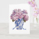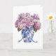 Esta encantadora tarjeta de felicitación muestra una impresionante ilustración en acuarela de un exuberante arreglo de hortensias en suaves tonos de rosa y púrpura, elegantemente exhibido en un clásico jarrón de cerámica chinoiserie azul y blanco. Atado con una delicada cinta azul con intrincados patrones florales, este diseño emana elegancia y encanto atemporales. El suave fondo blanco resalta los colores vibrantes y los detalles finos, lo que lo convierte en una opción ideal para cumpleaños, agradecimientos o cualquier ocasión especial en la que desees enviar un toque de belleza y sofisticación. Perfecta para agregar un mensaje personal, esta tarjeta en blanco seguramente deleitará a cualquier destinatario.