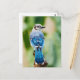 Esta postal muestra una foto de una marea azul, con una hermosa mirada a sus plumas a lo largo de su espalda.