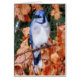 El pájaro de Jay azul está encaramado en una rama de roble helado.