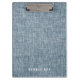 Manténgase organizado con este Vintage Denim Blue Jeans Look Clipboard. Con un diseño retro-denim duradero, es a la vez elegante y práctico. Perfecto para oficina, escuela o uso en el hogar, el clip robusto mantiene sus papeles de forma segura y añade un toque único a su área de trabajo. Combina la funcionalidad con un ambiente de moda.