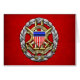 Presentación del proyecto "Insignia Militar", con diseños herálicos militares de alta calidad. Aquí encontrará prendas de vestir de diseño, accesorios, franqueo personalizado y regalos decorados con insignias del Joint Chiefs of Staff (JCS). Los Jefes de Estado Mayor Conjuntos (JCS) son un cuerpo de altos dirigentes uniformados del Departamento de Defensa de los Estados Unidos que asesoran al Secretario de Defensa, al Consejo de Seguridad Nacional, al Consejo de Seguridad Nacional y al Presidente en cuestiones militares. La composición de los Jefes de Estado Mayor Conjuntos está definida por el Estatuto y está integrada por el Presidente del Estado Mayor Conjunto (CJCS), el Vicepresidente de los Jefes de Estado Mayor Conjuntos (VCJCS) y los Jefes de Servicio Militar del Ejército, la Marina, la Fuerza Aérea y el Cuerpo de Marines, todos ellos nombrados por el Presidente tras la confirmación del Senado. Cada uno de los jefes del servicio militar, fuera de sus obligaciones de Jefe de Estado Mayor Conjunto, trabaja directamente para el Secretario del Departamento Militar de que se trate, es decir, el Secretario del Ejército, el Secretario de la Marina y el Secretario de la Fuerza Aérea. A raíz de la Ley Goldwater-Nichols de 1986, los Jefes de Estado Mayor Conjuntos no tienen autoridad operacional de mando, ni individual ni colectivamente, ya que la cadena de mando va del Presidente al Secretario de Defensa, y del Secretario de Defensa a los Comandantes de los Comandos Combatientes. Goldwater-Nichols también creó el cargo de Vicepresidente, y el Presidente es ahora designado como principal asesor militar del Secretario de Defensa, el Consejo de Seguridad Nacional, el Consejo de Seguridad Nacional y el Presidente. El Estado Mayor Conjunto (JS) es un personal de la sede del Pentágono, integrado por personal de los cuatro servicios, que presta asistencia al Presidente y al Vicepresidente en el desempeño de sus funciones y está dirigido por el Director del Estado Mayor Conjunto (DJS), que es un teniente general o vicealmirante. El distintivo de identificación del personal, presentado aquí, consiste en una corona metalizado de laurel de plata ovalada, simbólica de logro, coraje y victoria. Las cuatro espadas desenvainadas se refieren al poderío armado del ejército, la marina, la fuerza aérea y el cuerpo de infantería de marina y a su constante vigilancia y disposición combinadas en defensa de los Estados Unidos.