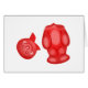 Ilustracion dulce de un delicioso bebe de gelatina de sabor rojo con la cabeza mordida. Imagen disponible en varios regalos y productos.
