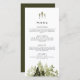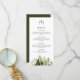 La carta de este boda incluye pinos de color acuático rústico y una letra manuscrita bohemia. Edite fácilmente todo el texto y las fuentes para que coincidan con el estilo de evento.