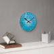 Reloj de pared azul con antiguos jeroglíficos grabados en piedra. Una adición fresca a cualquier pared.