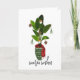 Ilustración de acuarela de planta de interior decorada con adornos navideños con jersey y bufanda alrededor del jarrón.