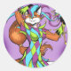 Un zorro colorido disfrazado de bufón caprichoso en este lindo pegatina