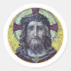 Pegatinas / Etiquetas: Jesucristo & Compasión - mosaico de arte vintage de Jesucristo bíblico, con corona de espinas, cruz y halo (brillo sagrado) alrededor de su cabeza. Hermosa obra de arte antiguo que comparte amor, compasión y perdón para todos los seres. Fotografía original/Arte/Diseño de work4dream.