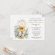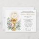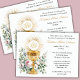 Con nuestra tradicional invitación católica a la Primera Comunión con la Santa Eucaristía acentuada con ramo floral rosa y blanco. En la parte de atrás hay una cita de la escritura con una imagen en blanco y negro del anfitrión, cáliz y trigo que representa el pan de la vida, Jesús. Se pueden modificar fuentes, textos e imágenes.