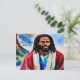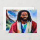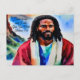Una pintura acuarela que muestra a Jesús sentado en la cima de una montaña y una escritura biblia tomada de Mateo 11:28.