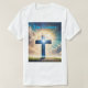 Proclama tu fe en Jesús como el centro de tu vida y el mundo con esta hermosa camiseta cristiana. La imagen muestra el universo dentro de la Cruz, y una brillante puesta de sol en un cielo brillante detrás de ella.