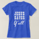 Jesús le ahorra camiseta. Esta camisa está para el creyente que sabe el poder de la espiritualidad. Ella equilibra lo que ella sabe y lo que ella siente. Ella se recuerda y a otras para rogar cuando la necesitan. Ella tiene una personalidad de la diversión y quiere recordar otras el poder del ahorro del Jesucristo.