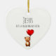 Encanta a un ser querido con nuestro "Jesús pone una sonrisa en mi fe" adorno personalizado! Con un oso adorable y un globo en forma de corazón, este adorno especial personalizado combina el diseño lúdico con un mensaje significativo que cualquiera puede aceptar. Perfecto para un regalo de vacaciones o un evento del ministerio de niños, este adorno es una manera infalible de inspirar fe y diversión! Compra un adorno personalizado hoy, y mira crecer las sonrisas!