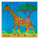 Una vibrante obra de arte a lápiz de colores que presenta una jirafa y un árbol, capturando la esencia de la naturaleza en un estilo único.