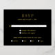 Carta moderna de rsvp de bodas en negro y oro con un diseño minimalista con Relieve metalizado de oro real en la parte delantera. La espalda tiene su monograma. Este diseño es bastante sencillo para un boda formal.