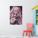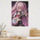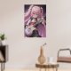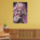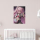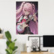 Un retrato de una joven y fresca anime con un largo cabello rosado tocando la guitarra. Este es un arte generado por IA.