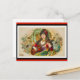 Postal bonito vintage con una joven, posiblemente una gitana, tocando la guitarra. Los colores son verde azulados y azul acuático, rojo rosa, melocotón, dorado, lila, negro y crema. La bella figura está rodeada de una bonita decoración floral. Esta imagen tiene fecha de 1870-1890 y fue presentada en una etiqueta de tabaco. La imagen original reside en las colecciones digitales de la Biblioteca Pública de Nueva York. La imagen aquí ha sido realzada y enmarcada.
