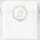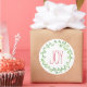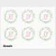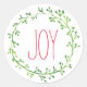 Sencillos y bonitos pegatinas navideñas con una corona de color verde y la palabra Alegría en un elegante tipo de letra roja.
