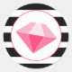 Un pegatina con un ilustracion de una joya rosa dentro de un círculo sobre un fondo rayado en blanco y negro. Busque las invitaciones de los piratas del cofre del tesoro en Jill's Paperie.