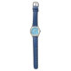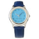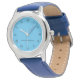 Reloj de muñeca de mujeres de plata redonda con banda de muñeca azul y cara azul.