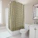 Diseño abstracto fuerte para tu baño. La cortina de la ducha combina objetos con el patrón de las joyas del Congo.