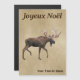 Una pintura digital con "apariencia vintage" de un alce toro (Alces alces) superpuesto en una imagen de fondo de papel o pergamino antiguo. También aparece texto en francés que dice "Joyeux Noёl". Agrega tu propio texto adicional.