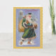 Joyeux Noel es Feliz Navidad en francés. La imagen es de una hermosa postal grabado en relieve de aproximadamente 1910. La escena muestra a Santa Claus con una bata verde azul con guarnecido de piel blanca. Los colores distintos del rojo para el traje de Santa eran muy populares en las tarjetas de Navidad de principios del siglo XX. Santa se está abriendo camino a través de una tormenta de nieve usando un bastón para caminar. Un campanario de la iglesia está al fondo.