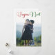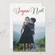 Elegante tarjeta de Navidad Joyeux Noël con hermosa tipografía cursiva en rojo y verde. Esta moderna tarjeta de Navidad con fotografía familiar francesa presenta hermosa escritura y su nombre en blanco sobre la imagen vertical de las fiestas.