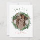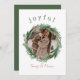 La elegante y alegre tarjeta de Navidades fotográficos es la manera perfecta de enviar saludos de vacaciones a amigos y familiares. Para la persona moderna que quiere una tarjeta de Navidades de fotos elevada, cálida y de buen gusto, esta plantilla de tarjeta de Navidades de personalizable es la más adecuada para usted. Tanto el simple y moderno tipo de letra escrito a mano con la palabra "alegre" tiene la estética navideña esperanzadora que todos aman. Utilice la herramienta de personalización para colocar la imagen en la corona y personalizarla con su nombre. El color verde intenso y cálido del reverso y el agradable saludo de los Navidades le confieren a los Navidades un aspecto sofisticado. El saludo se puede usar como está o personalizar para convertirlo en su mensaje personal.