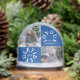 Joyous Yuletide snow globe with two family photos, family name and year. Photo templates via Pixabay licensed under CC0 and must be replaced with your own photos