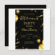 Elegante invitación de fiesta de retiro en negro y oro con un diseño elegante con texto totalmente editable. Personalizar fácilmente todos los detalles para crear la celebración perfecta de envío.