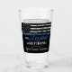 Este diseño incluye una bandera de la fuerza policial con rayas blancas y negras, y una delgada franja azul. El texto de "La leyenda es agotadora" se encuentra por encima del nombre de personalizable del agente de la ley que se retira, sheriff, capitán o jefe. ¡Celebra con estilo con este gran favor de partido!