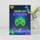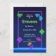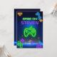 Juego activado neon verde, azul amarillo invitación de jugador de videojuegos.