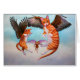 Dos ángeles tabby con alas halcones juegan con un ratón a través de las nubes.