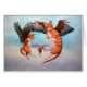 Dos ángeles tabby con alas halcones juegan con un ratón a través de las nubes.