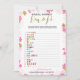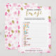 Un delicado juego moderno de "Adivinanza de emojis" con patrón floral para despedida de soltera, el diseño presenta un estampado floral en rosa y dorado. Esta tarjeta está personalizada con el nombre de la futura novia y la fecha de la celebración.