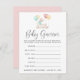 Una bonita llama con globos rosa, amarillo y turquesa en la parte superior. La frase "Baby Guesses" aparece en un caprichoso guión de caligrafía. Personalice con instrucciones del personalizado, criterios de adivinación, el nombre de la futura madre y la fecha de la ducha de bebé. El diseño se coordina con nuestra colección de bebés Dulce Llama y niños.