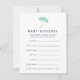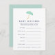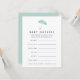 ¡Dejemos que los bebés duchen a los huéspedes que tengan la mejor idea del género del bebé, la fecha y hora de nacimiento, el peso y la duración! Coloque una pila en la entrada del evento, párela o deje una en cada lugar. También hace una broma para la futura mamá cuando se recopila en una caja de bonito o un encuadernador. El diseño neutro en cuanto a género incluye un ilustracion de paraguas color verde menta pastel con letras modernas y un sutil patrón de diamante punteado en el reverso.